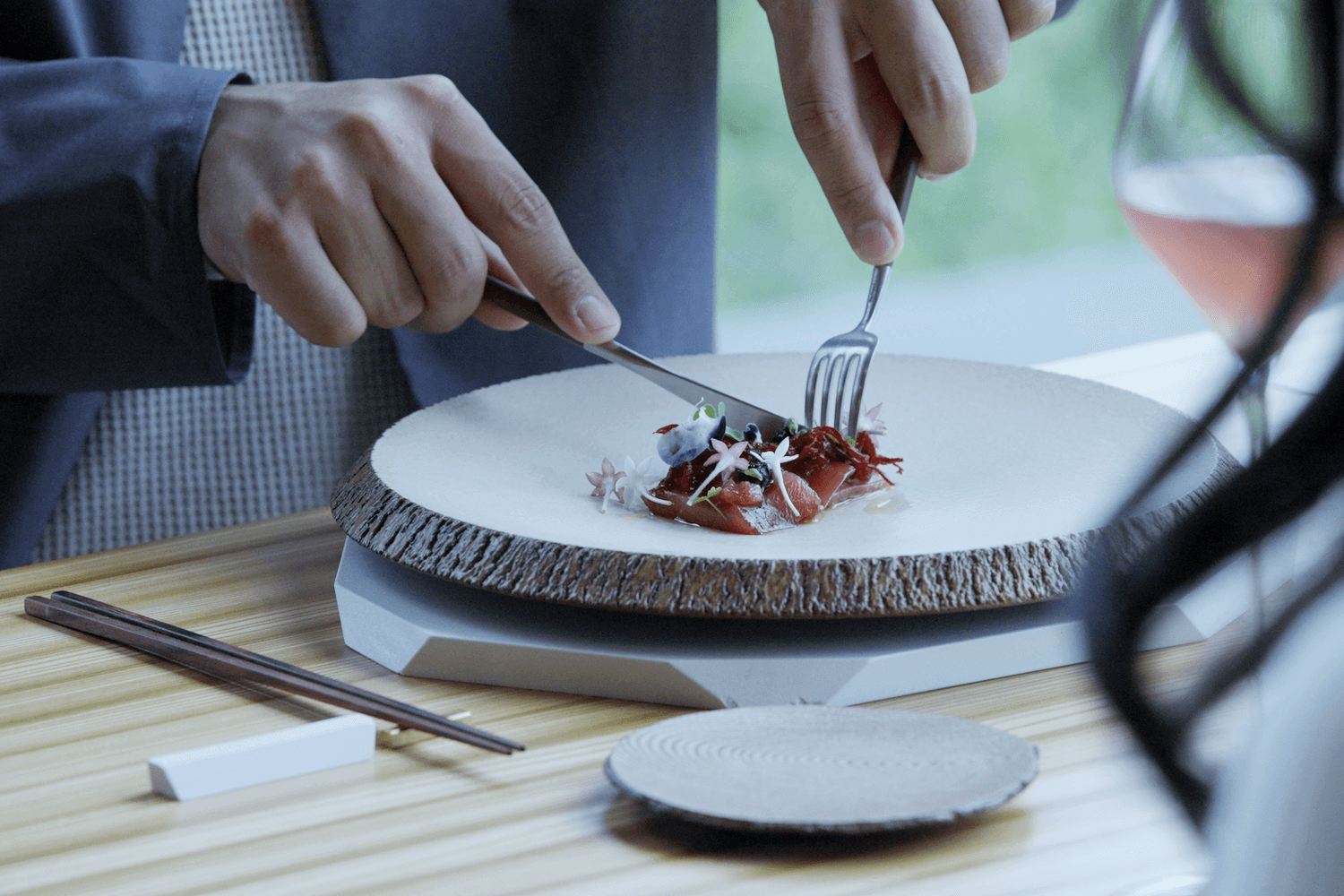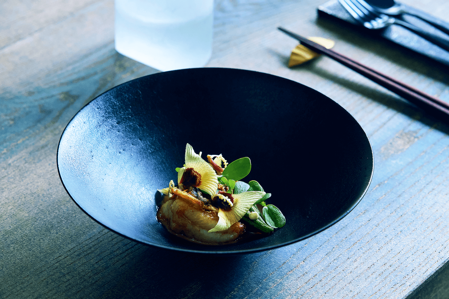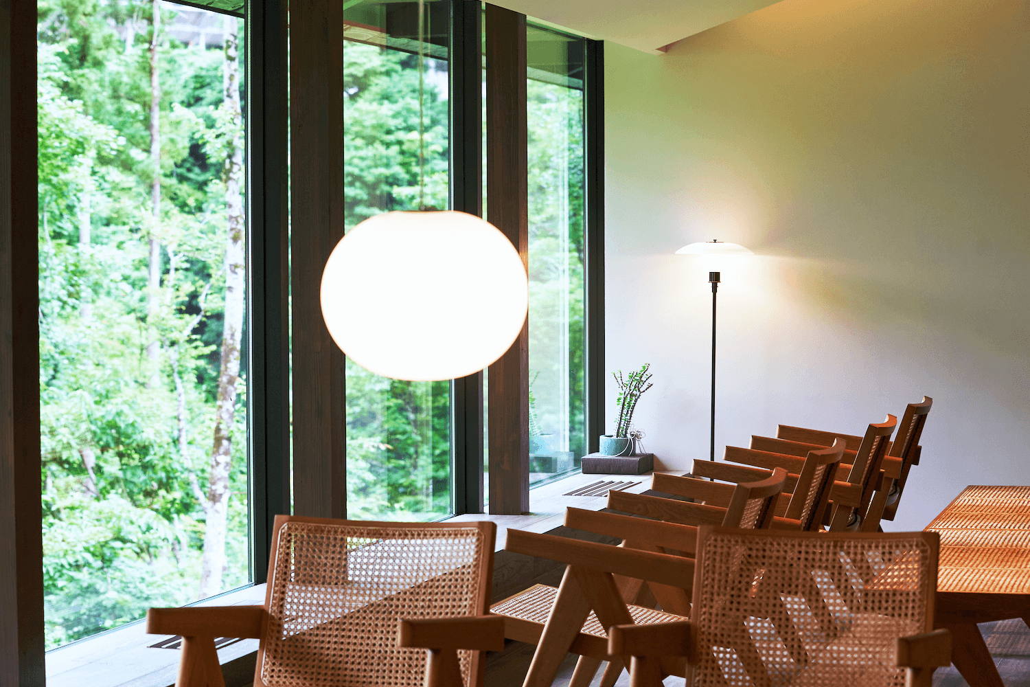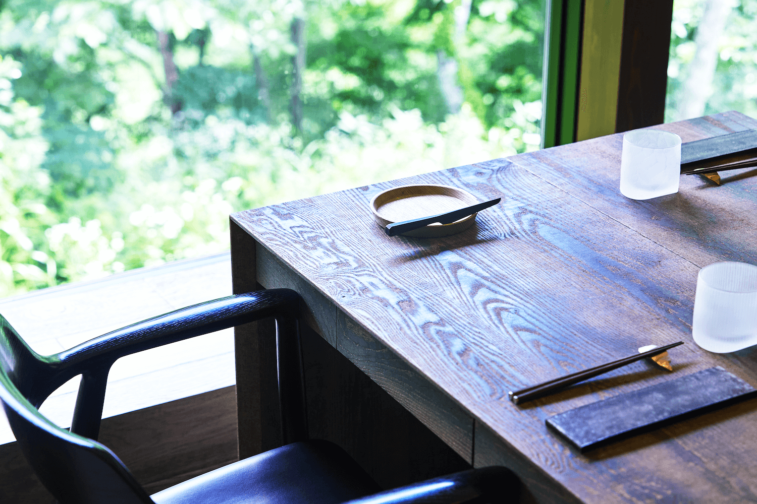 The experience of L'évo starts right from the moment you walk towards it. Tucked away in the beautiful landscape of Toyama’smountains, this incredible restaurant and hotel is one with the stunningscenery only to be found in Toyama. It is as premium as it gets, but it is a visit that is well worth it. Every detail has been thought about, from the furniture to the locally sourced produce used in the kitchen, all the way through to the art hung on the walls. L'évo never compromises on quality and offers their guests an unparalleled immersive experience.